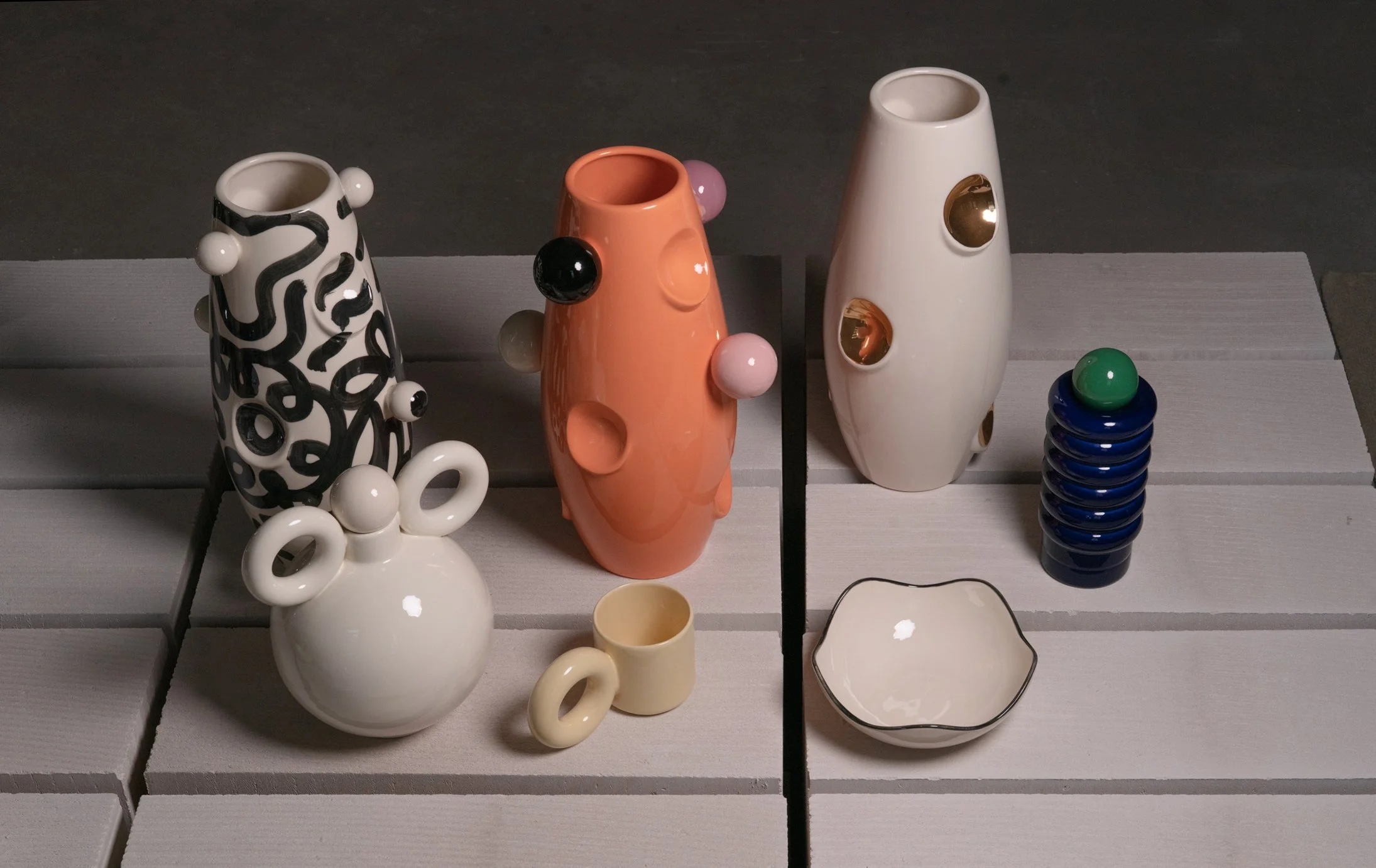 OKO składa się obiektów ceramicznych: wazon OKO/2014, Teresa/2018, Nana/2018, Krystal/2018, Irena/2019, Miki/2020 oraz pater Aniela/2018 i MiniANIELA/2022. Przedmioty są wykonywane i malowane ręcznie przy współpracy z wykwalifikowanymi rzemieślnikami i technologami. OKO jest punktem wyjścia dla kolejnych kolekcji artystycznych i rzeźbiarskich. Modułowe ceramiczne totemy Mama/2019, Tuląca Mama/2020, Totem Formy/2020 czy instalacja Fontanna/2019 to obiekty na granicy sztuk wizualnych i designu.